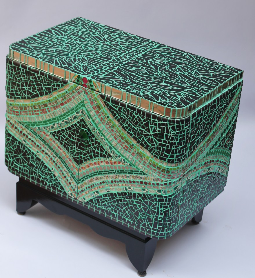 mosaïque picassiette, petit meuble Suivant → petit mobilier façon picassiette, 66cmx40cmx62cm de haut